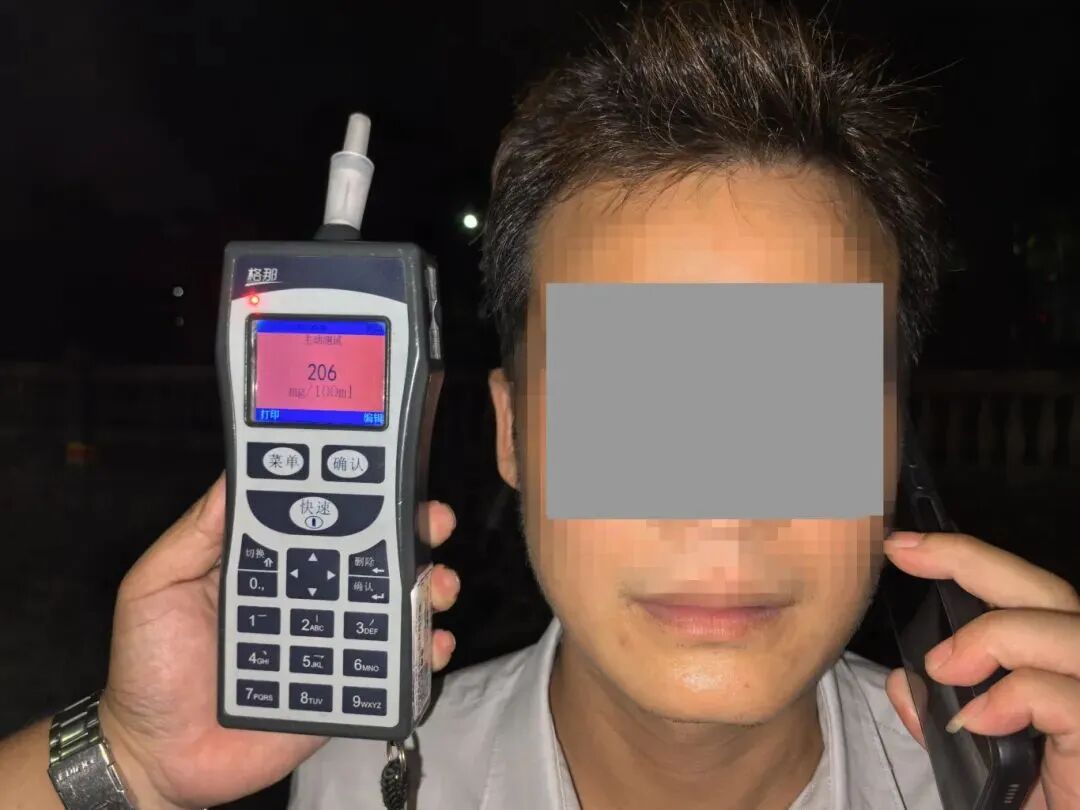 7月18日晚,惠州交警在辖区重点地段设卡开展酒驾整治行动,对一辆银色小车例行检查。车窗刚降下,酒气立即溢出,驾驶人李某经现场呼气式酒精检测,结果显示为154mg/100ml,李某涉嫌醉酒驾驶机动车。