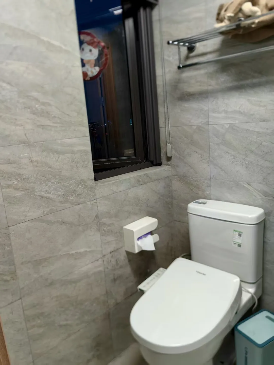 记者在楼上同户型一位邻居家看到,这个卫生间约5平方米,马桶就在朝西的窗户边,窗户大概宽40厘米、高80厘米,向外大概能推开70%,但小孩的身体已足够探出。从卫生间窗口往下望去,正对2楼平台。