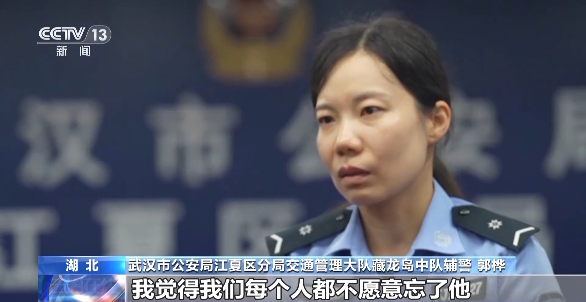 武汉市公安局江夏区分局交通管理大队藏龙岛中队辅警郭桦:到那一刻的时候我真很难以接受,就受不了,我觉得我们每个人都不愿意忘了他。