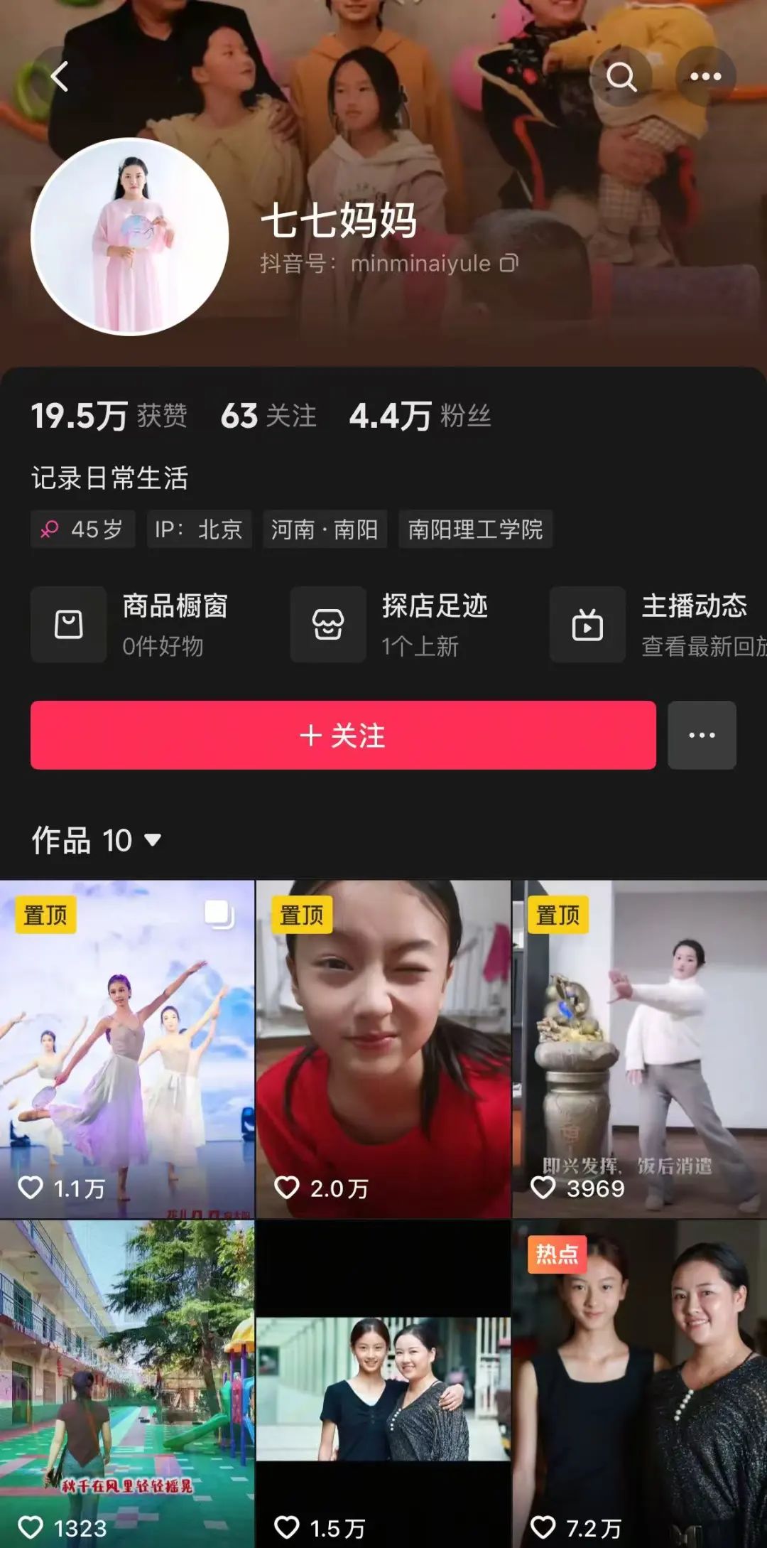 “七七妈妈”还强调:“家里没背景也没团队,感谢大家的关注。”