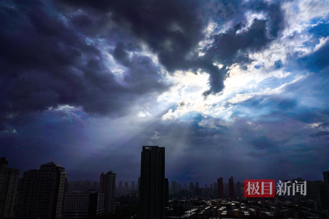 7月23日下午,郑州市遭遇强对流天气,暴雨伴随雷暴大风席卷城区,气温从午间的35℃骤降至25℃,体感瞬间清凉。经历了一天暴雨洗礼的郑州迎来震撼晚霞景观。当天19时许,西边的天空突然绽放出金红色的光芒,整座城市被笼罩在绚丽的霞光中。