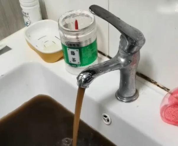 其拍摄的视频显示,拧开裹了一层纱布的水龙头,经过过滤处理后,流出的自来水仍然浑浊不堪。