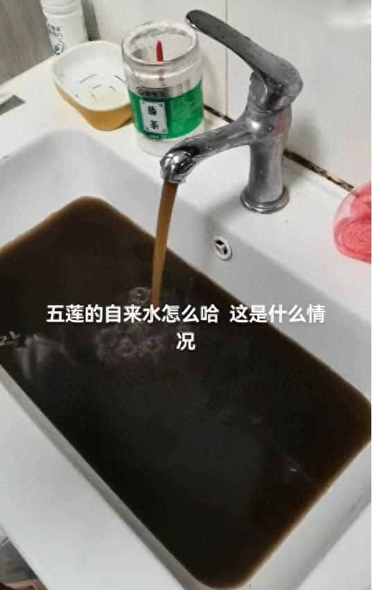 另有业主发视频称,家里的自来水里面有泥。一镜到底的视频显示,拧开龙头,流出的是泥水,不是一般的浑浊,而是深褐色的,完全不能饮用。这位业主说:“这就是五莲县的自来水,这水还怎么用?”