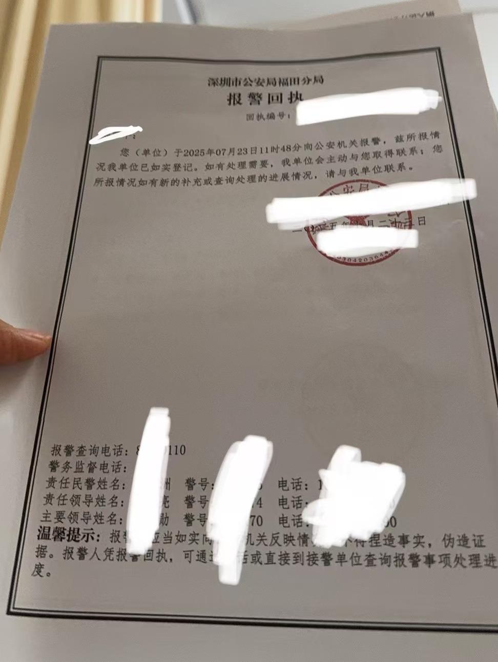 潇湘晨报记者联系了深圳市公安局福田分局天安派出所,值班人员对记者的采访需求和联系方式进行了登记,并表示需要请示分局,经同意后,才能对外接受采访。截至发稿,记者暂未接到福田警方的电话。