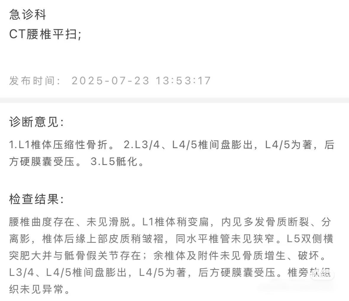 当事人发帖称,她面试时要求对方删掉简历上的身份证号和手机号,被拒绝,有五六个人将其围住,她报了警。该公司一人员拿着她的简历要离开,她要求对方放下等警察赶到处理,对方离开后,她跟随走到了一处房间,等发现是男厕所想离开时,门被关上,对方开始打她,“左手搂着我的脖子,右手打了我的嘴巴和额头……想站发现站不起来了,腰钻心的疼。”后来有人要抢她的手机,她趁对方不注意爬出了厕所。她就医拍片后发现是腰椎骨折。