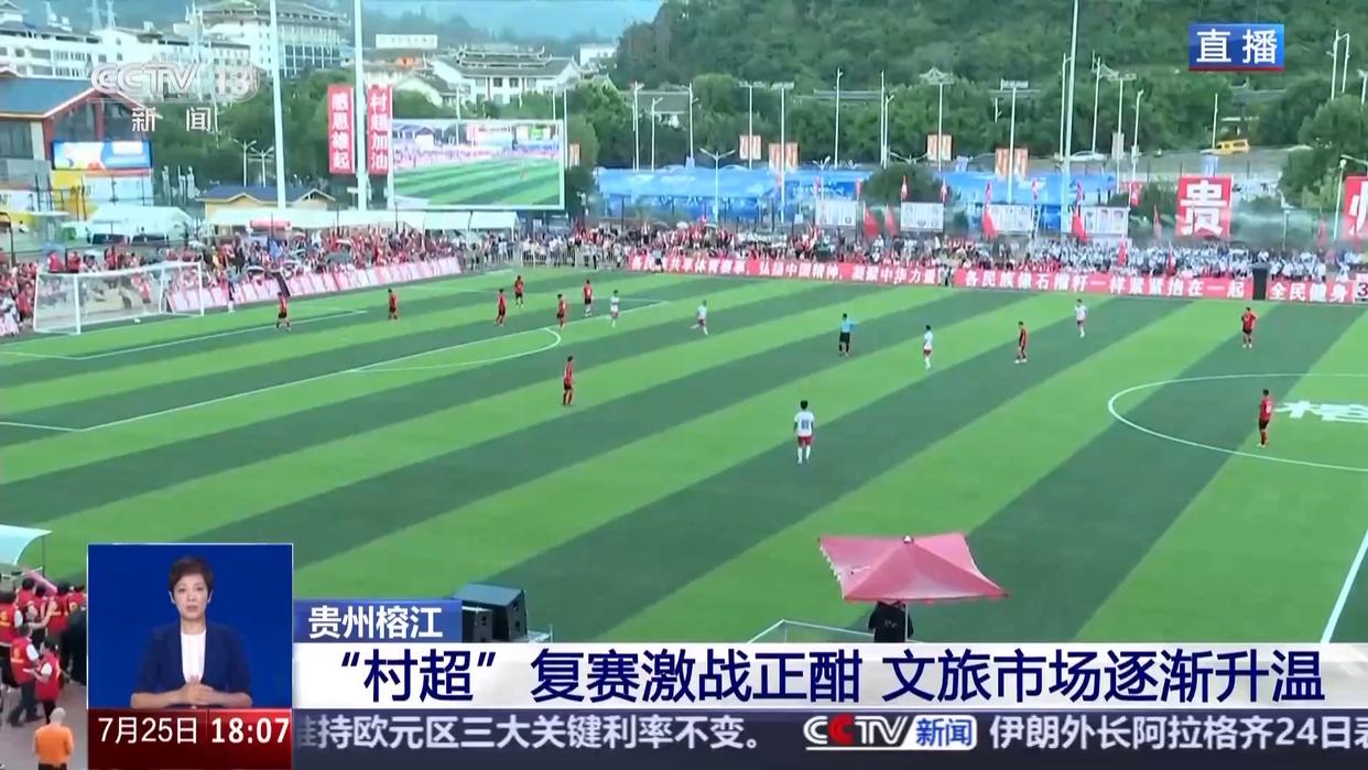 总台记者 尹平:我现在就在村超赛场旁边,正在进行的是榕江自己的村级联赛——由高硐村对战寿洞村的比赛。现在比赛已经进入到下半场。