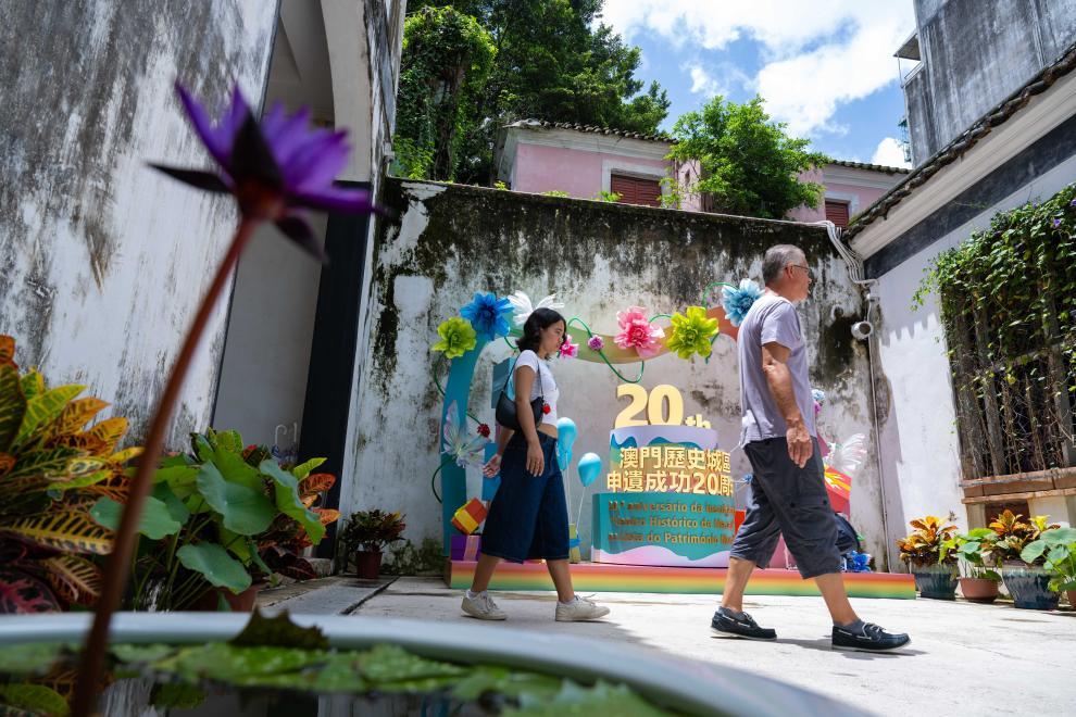 今年是澳门历史城区申遗成功20周年。记者在议事亭前地、大三巴牌坊等核心景点附近看到,尽管日头正烈,旅客兴致不减,拍照留念、采购手信、“打卡”网红店铺,乐在其中。有人在特设的申遗成功20周年主题留影区拍照,还有人收集世遗建筑印章和邮品,作为特别纪念。