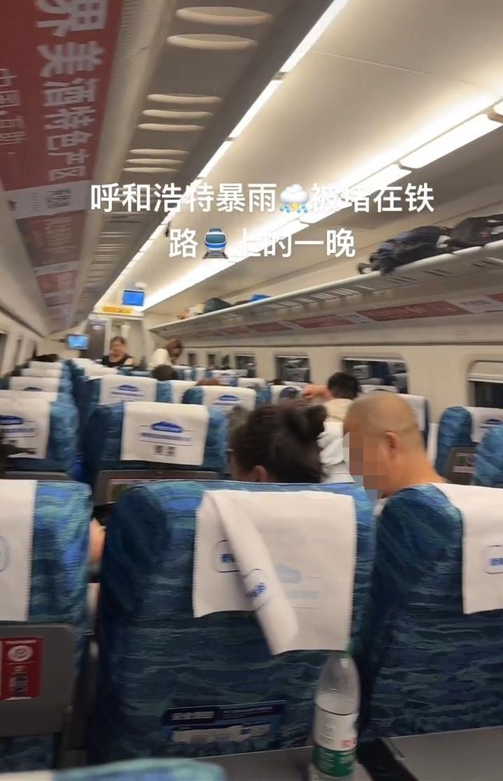 7月25日,受暴雨影响,多趟开往呼和浩特的列车出现晚点,不少网友发视频反映自己的遭遇。