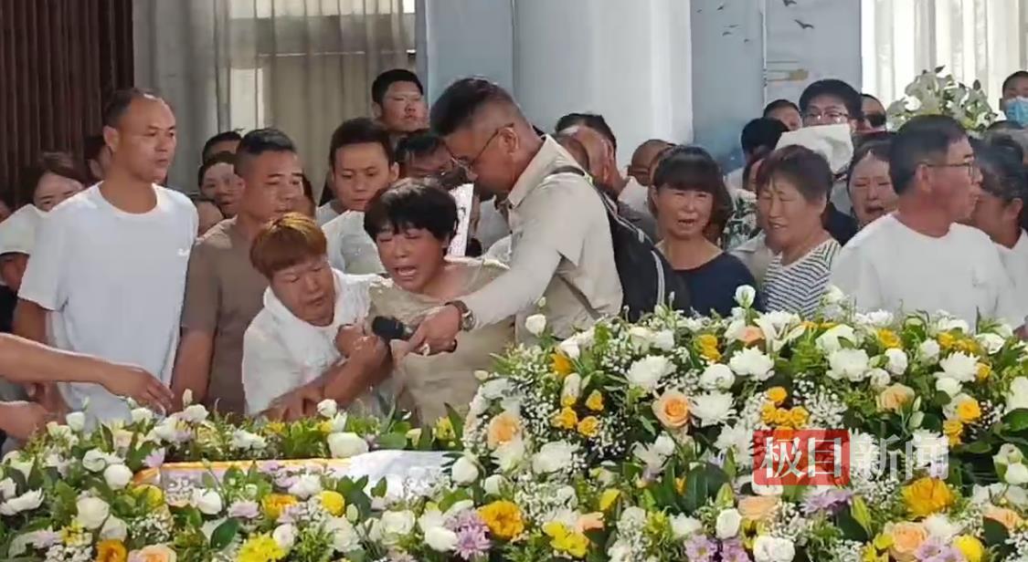 7月26日上午9时许,宋士佳的遗体告别仪式在淮北市殡仪馆举行。7月20日,宋士佳因为救一家三口而牺牲。极目新闻记者在告别仪式现场看到,宋士佳的两个儿子被亲属抱着向遗体告别,宋士佳的母亲也哭得撕心裂肺。