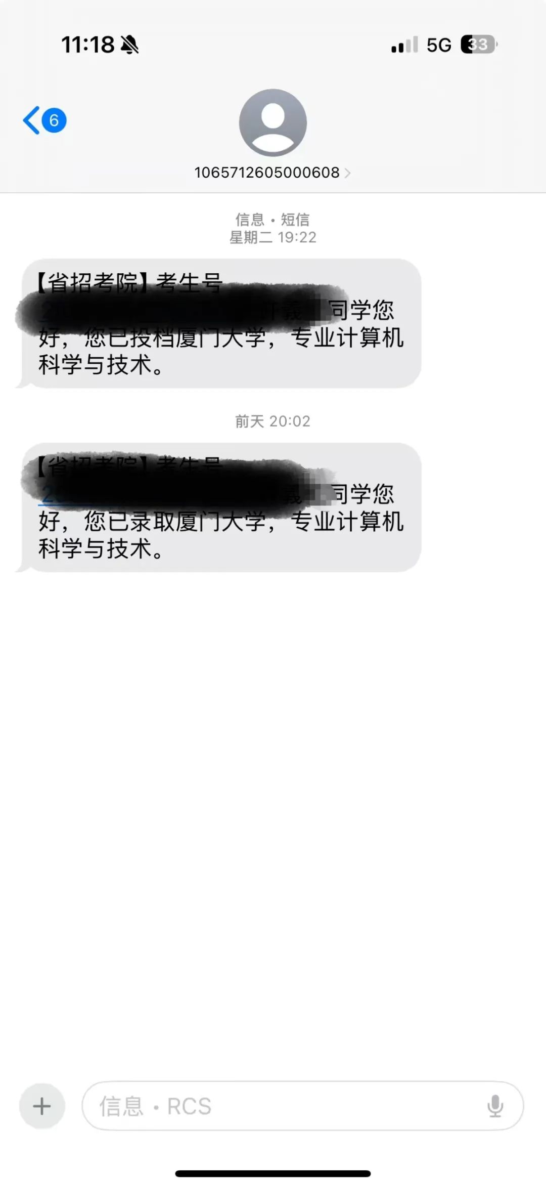 他介绍,当时一名工作人员让他们写下相关问题称要请示领导,并未对考生的质疑和退档的申请做出回应,“当时我们去招生院的时候是预录取,可以申请在招生院退档”。当晚,陈庄再次收到了贵州招生考试院的通知短信,称“您已录取厦门大学,专业计算机科学与技术”。
