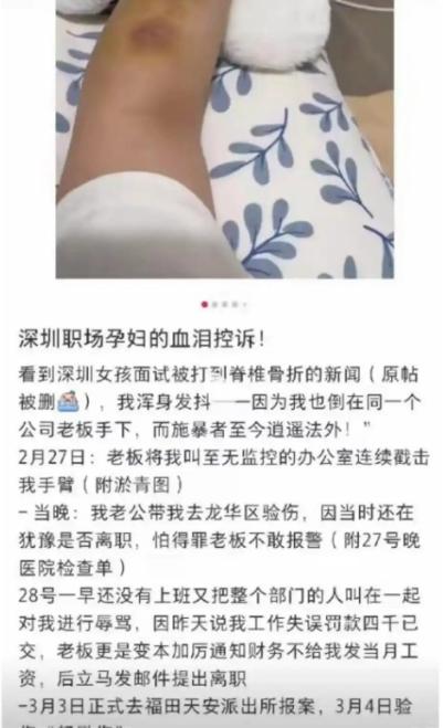 事件发生之后,有更多女性通过社交平台发布了自己在该服装企业的遭遇,施暴者指向同一人韩某某。7月27日,潇湘晨报记者联系到了一名当事人李女士。据其介绍,今年2月27日,李女士因工作上的原因,遭韩某某谩骂指责,用手指戳胳膊致淤青,并罚款4000元。