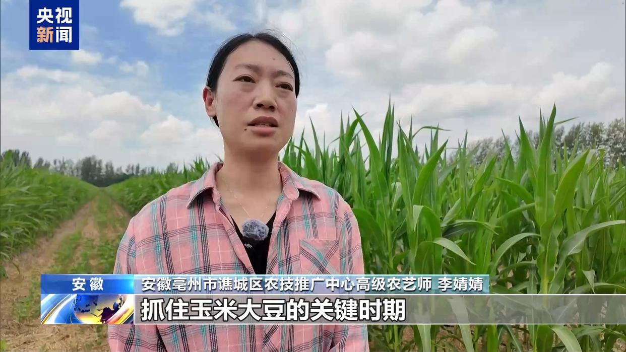 安徽亳州市谯城区农技推广中心高级农艺师 李婧婧:抓住玉米大豆的关键时期,补水补肥,以夺取秋粮的丰收。