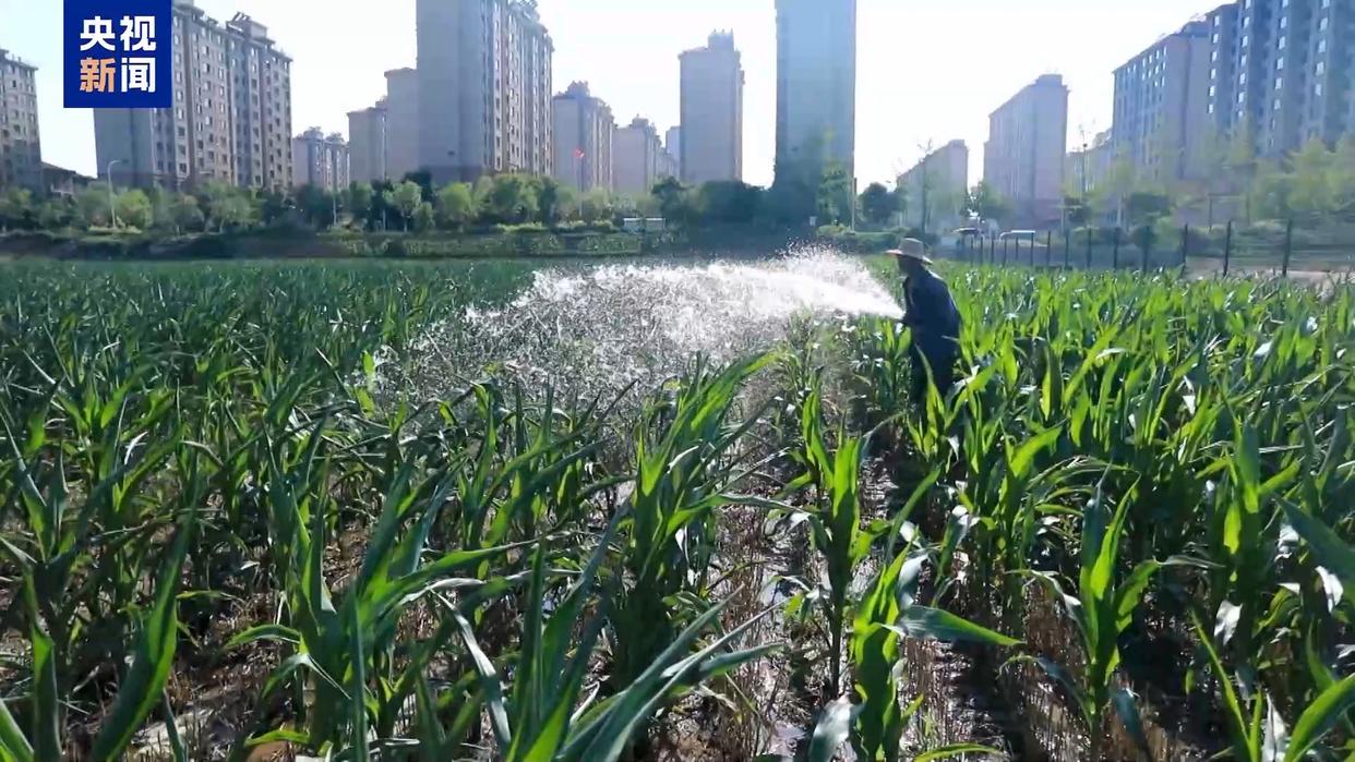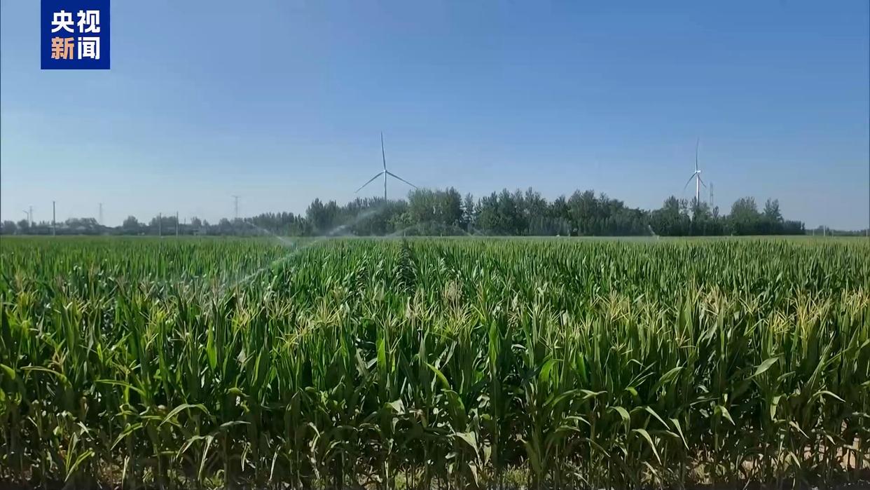 眼下,河南周口项城玉米正值生长关键期,近期的持续高温,再加上有效降水不足,部分地块玉米叶片出现卷曲。在郑郭镇,当地正在进行第二轮全面补水。7台卷盘式自走喷灌机360度旋转,实现精准覆盖,200亩玉米田的滴灌带也持续输送水源。