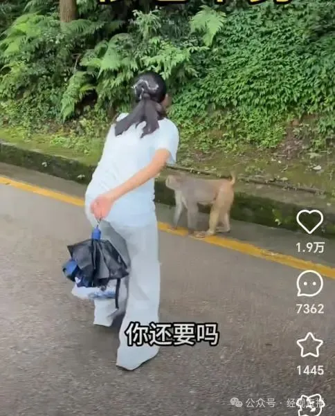 近日,有网友发布视频称,自己和妹妹前往贵州黔灵山公园游玩,妹妹本想拿着西瓜喂猴子,结果猴子非但不接受“好意”,反而跳起来翻了个跟头,并用脚蹬踹了妹妹的衣服。
