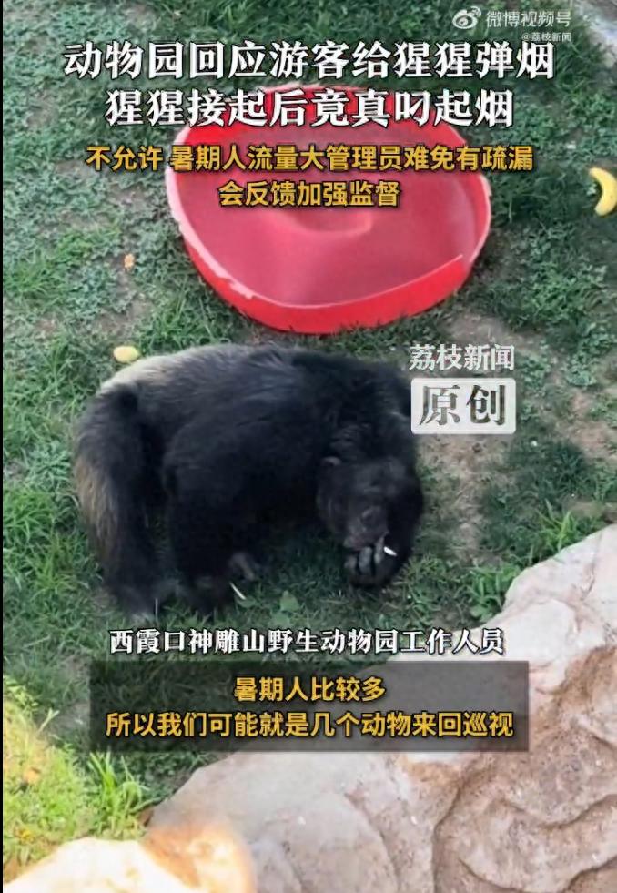游客抛烟,猩猩叼起猛抽,动物园回应:会反馈加强管理