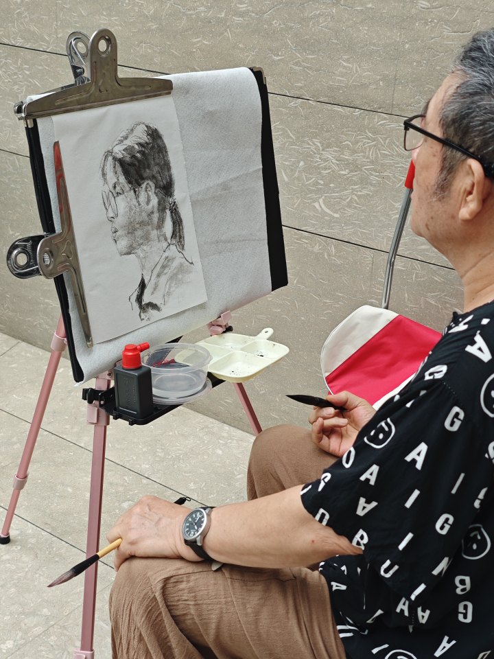 “我们这群人,画画是共同的爱好。”赵扬说,“有人退休后爱摄影,有人爱广场舞、下棋、打拳,我们这些人爱画画,在我看来,画画是不错的养生方式,动脑练手。周六在西湖边芳华亭,周日在浙江美术馆,公益性给大家画肖像。我们一周一会,集体创作交流,既锻炼自己,也服务社会。有不少年轻老师和家长,专门带着学生和孩子到现场观摩学习。”