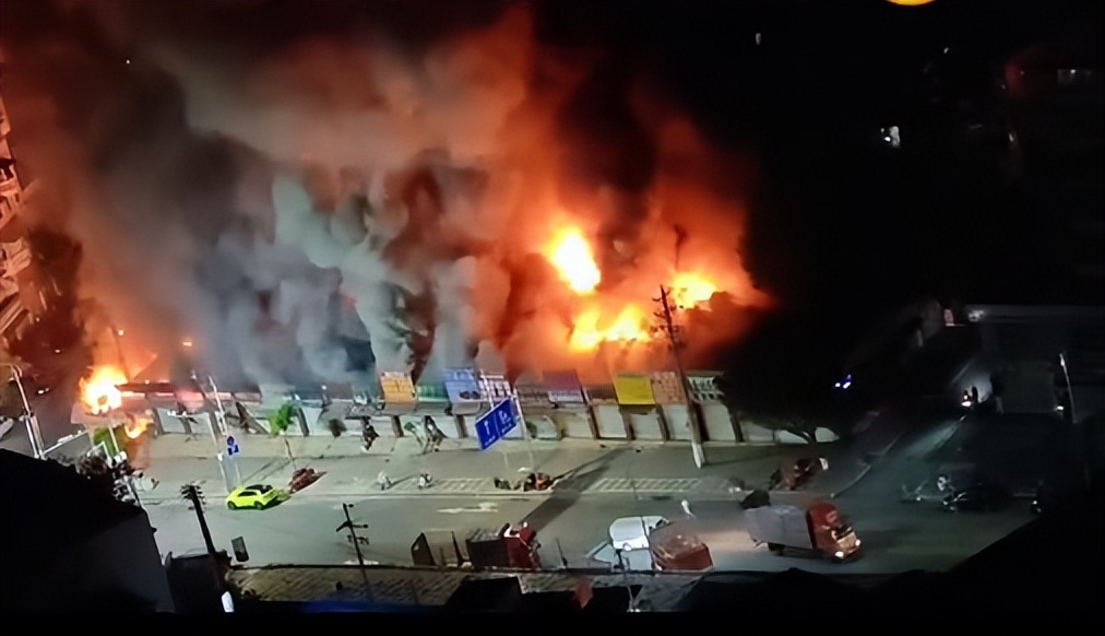 网上多段视频显示,一些低矮建筑物燃起熊熊大火,顿时浓烟滚滚火光冲天,腾起数十米高的烟雾。视频还显示,街头停着闪着警灯的警车,消防正在奋力灭火,有穿着睡衣的市民站在公路上对着大火拍照。