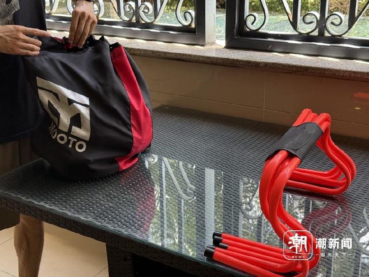 他将锥筒、绳梯、栏架等用品,在场地摆放好。过了一小会,他的客户——10岁的小壮骑着自行车,来到了约定地点。