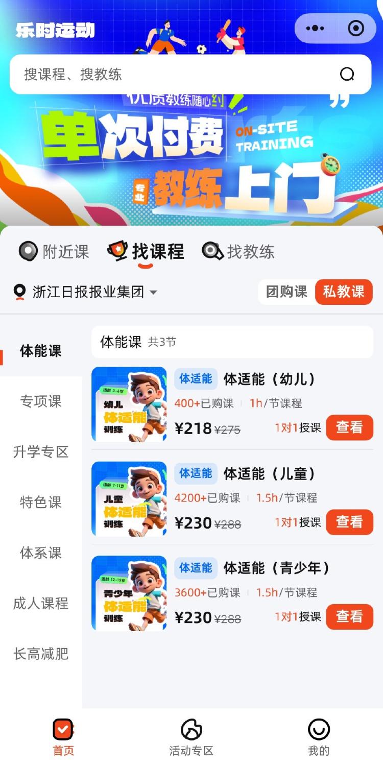 一对一私教模式之外,小班团是更具性价比的选择。杭州市萧山区的张女士,联合同小区两名家长组成“三人团”,每周固定三节课,为孩子订购“体育外卖”。