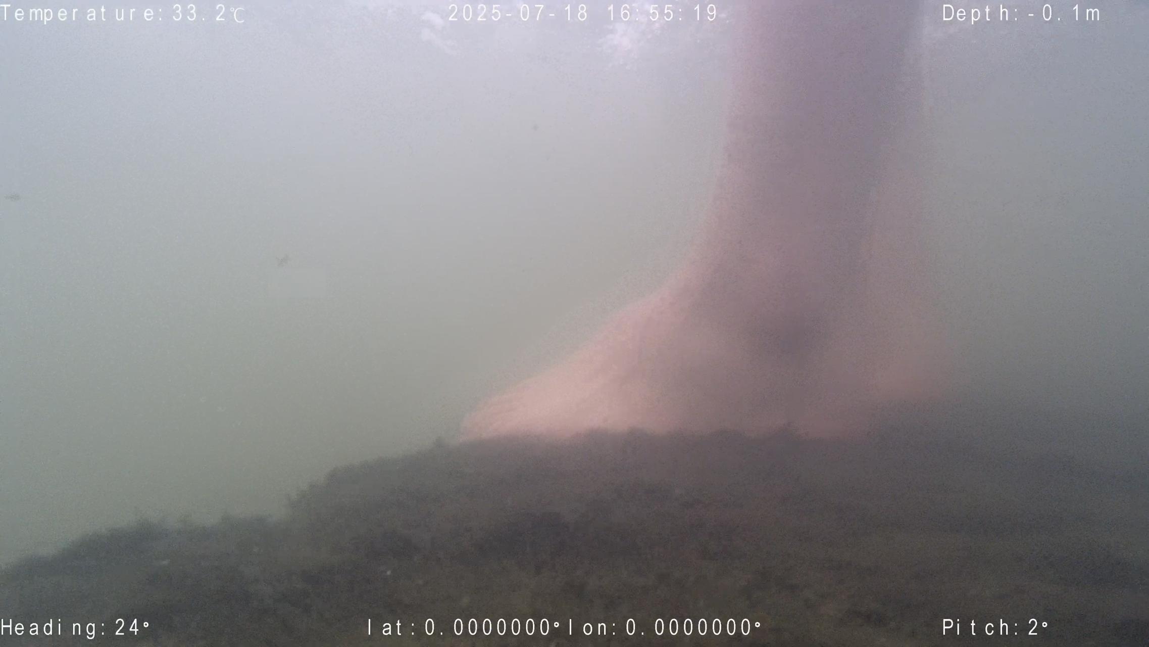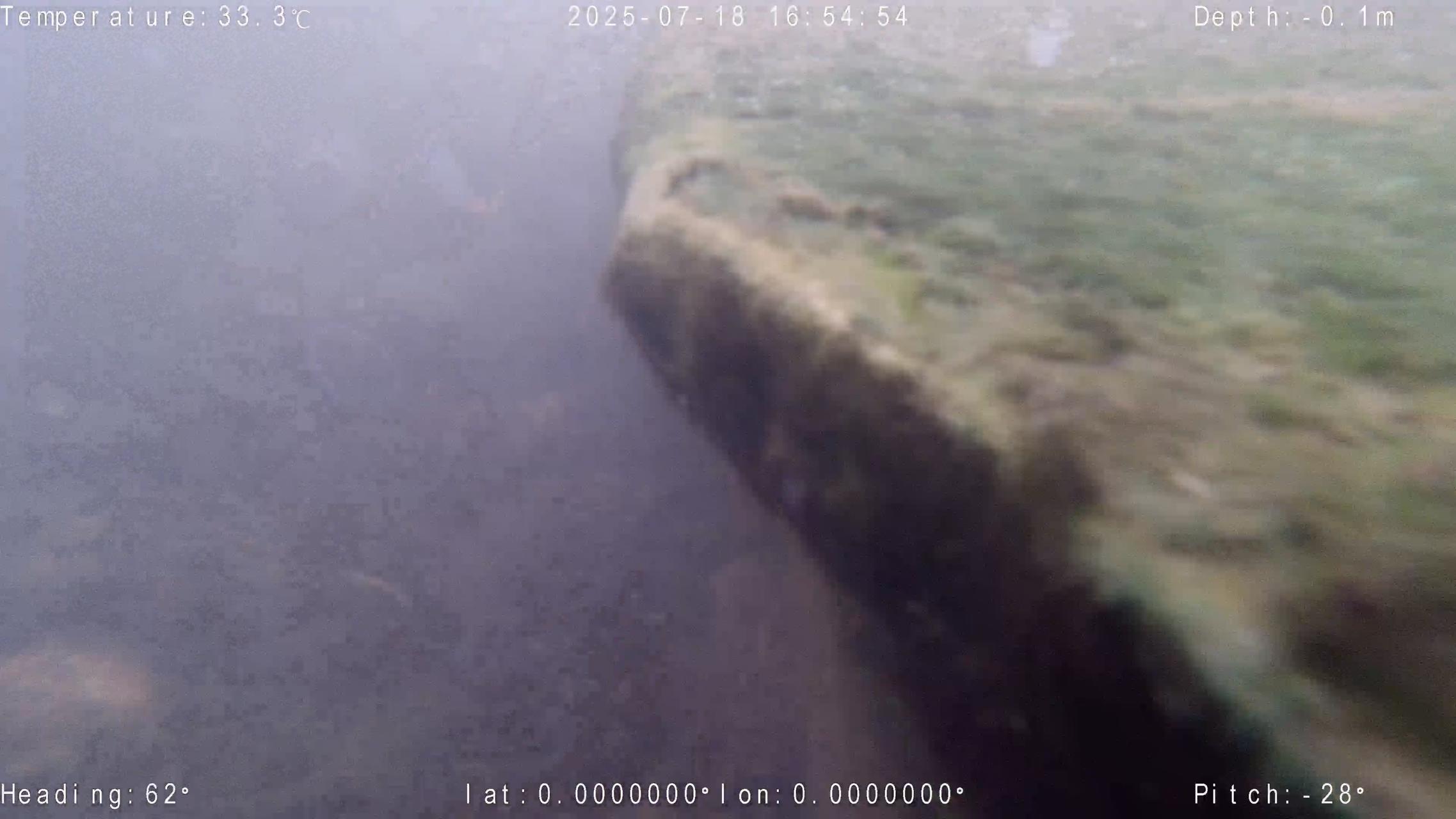 水下机器人拍摄画面显示,仅水下的一两级台阶,就已被厚重的青苔全部包裹,再往下几级,则突然断层式地进入了深水区。而在水下有大大小小的石头和缆绳,不少石头有锋利的棱角,容易刮伤、绊倒游泳者。