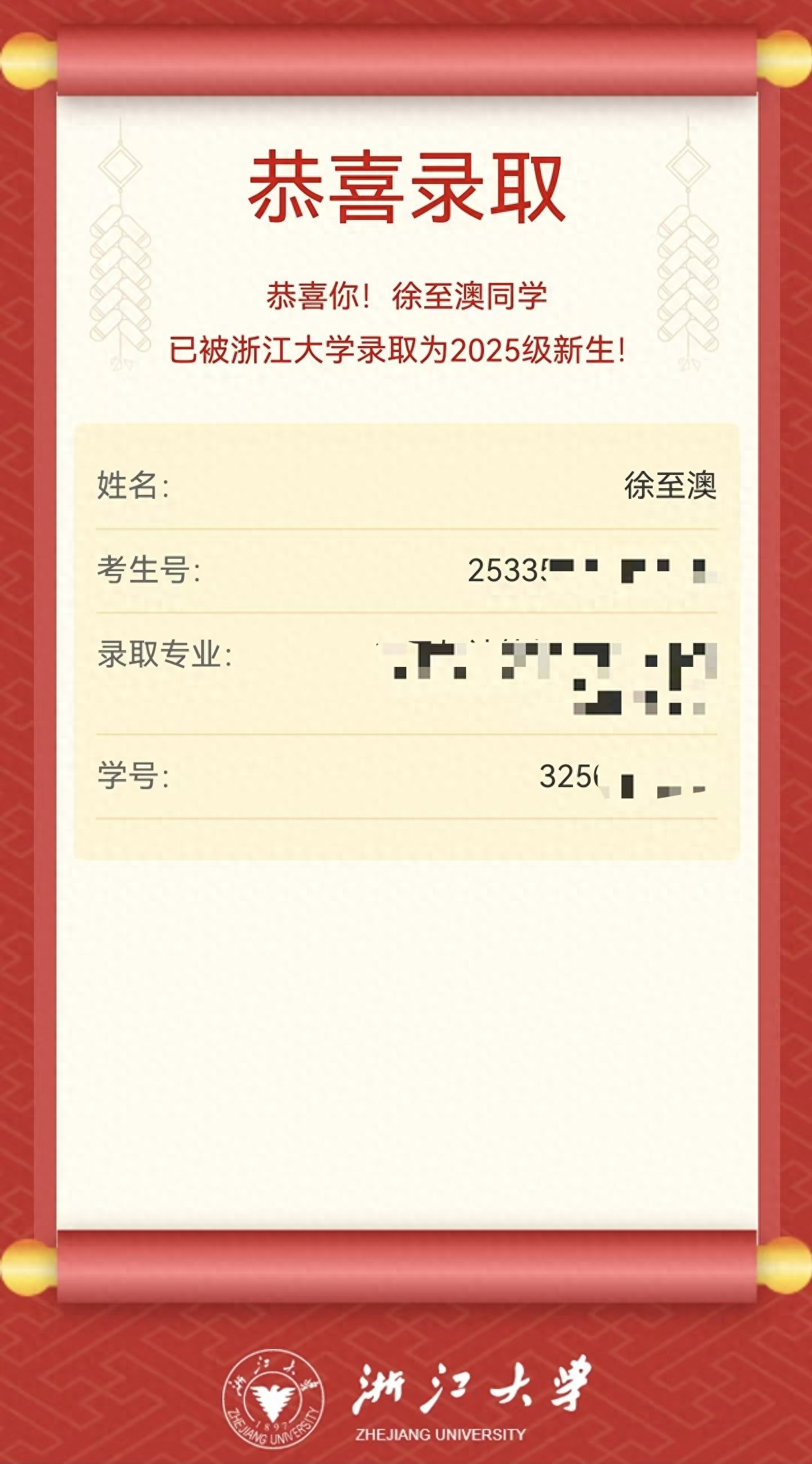 近日,高考捷报频传,浙江金华考生徐至澳也迎来了好消息,她以优异成绩被浙江大学录取。