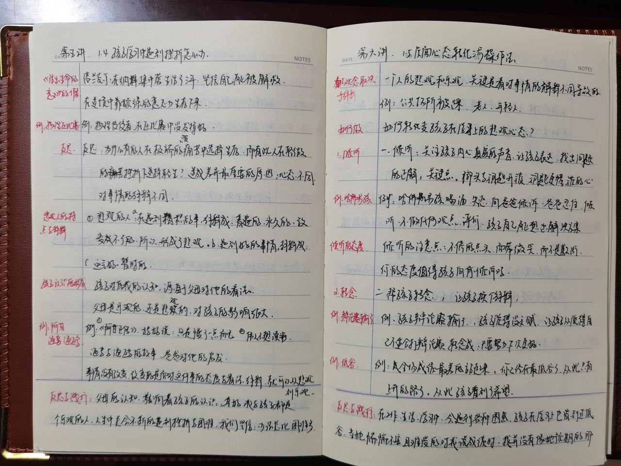 赵闺贞在听课笔记上详细地记录了自己的反思与实践。受访者供图