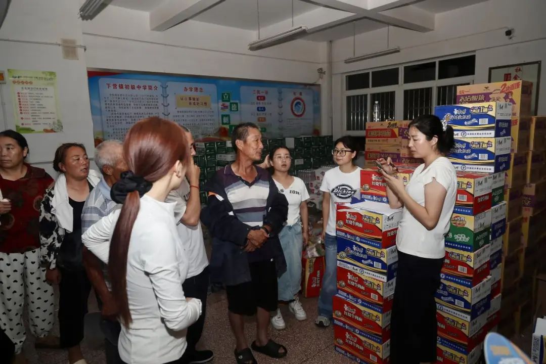 从白天到晚上,安置点的村民渐渐多了起来。大厅内,镇政府的工作人员还在马不停蹄地清点方便面、面包、矿泉水、毛毯等应急物资,并有序地进行分发。
