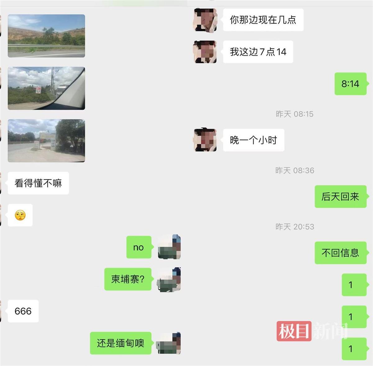 李先生提供的聊天记录显示,李尉标告诉堂姐自己在国外,要出去挣钱,一周内就回,还发来带有外文标识的路边的照片。李先生说,后来儿子就没再回复堂姐消息,其堂姐随后将情况告诉给了家人,“我得知情况就在麻江本地报了警,第二天也去了广西防城港东兴市报了警。”