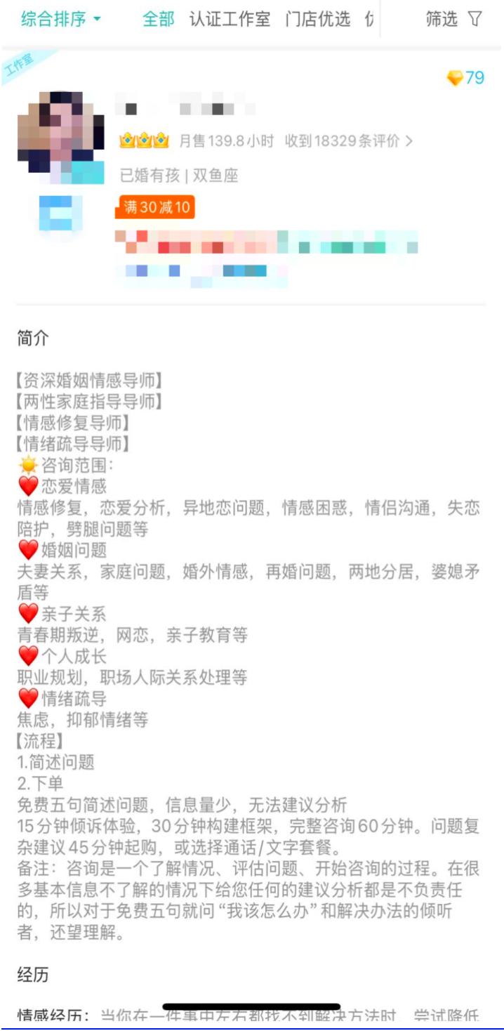 “我们也接触过类似的案例。消费者希望‘咨询舒压’,结果造成心理的二次伤害。”心理咨询师张艺欢说。
