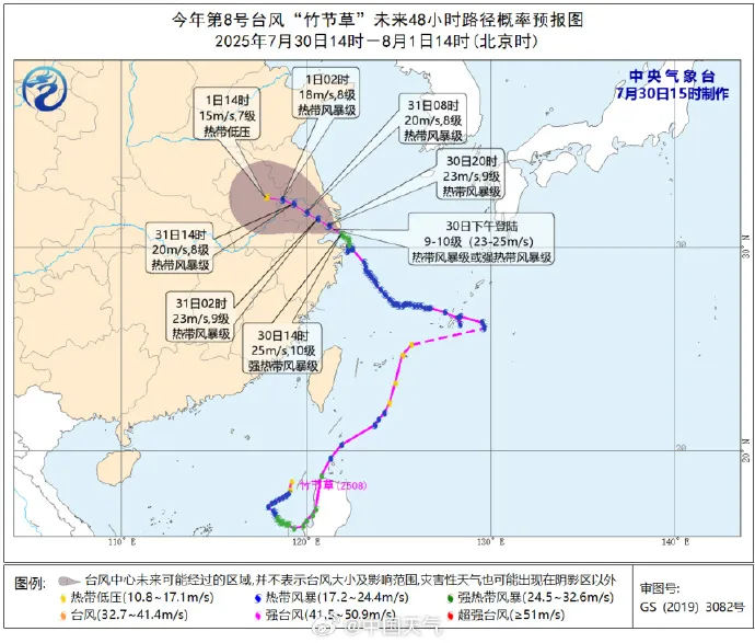 中国天气网气象分析师孙倩倩表示,台风登陆不等于危险解除,登陆后“竹节草”移动速度较为缓慢,会持续给江苏、安徽等地带来强降雨天气。
