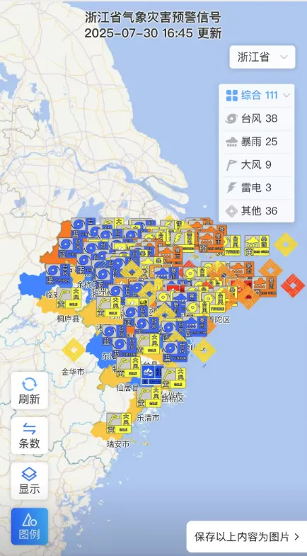 据气象预报,受第8号台风“竹节草”影响,7月30日宁波、舟山、嘉兴、绍兴东部、杭州东部和湖州等地有大雨,部分暴雨,局部大暴雨。省自然资源厅发布30日8时至31日8时地质灾害风险等级预警:宁波市(江北区、奉化区)、舟山市(定海区)等部分地区地质灾害气象风险很高(红色预警);宁波市(海曙区、北仑区、镇海区、鄞州区、象山县、宁海县、余姚市、慈溪市)、绍兴市(上虞区、新昌县)、舟山市(普陀区、岱山县)等部分地区地质灾害气象风险高(橙色预警);湖州市(长兴县)、绍兴市(越城区、柯桥区、嵊州市)、金华市(磐安县、东阳市)、台州市(天台县)等部分地区地质灾害气象风险较高(黄色预警)。