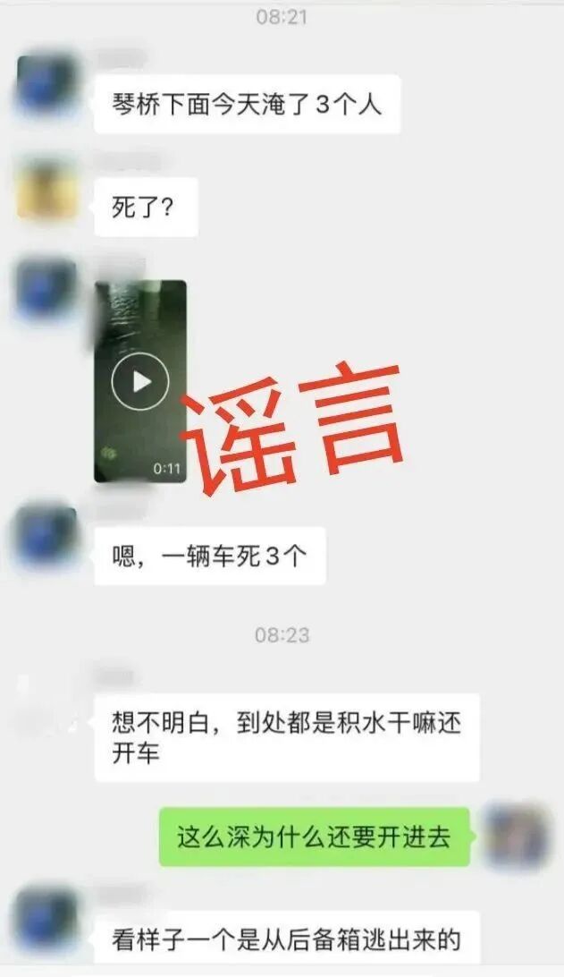 7月30日8时许,网民陆某某(女,48岁,宁波鄞州人)在多个微信群中谣称“宁波琴桥下淹了3个人”“嘎了”“一辆车死三个”等信息。目前该信息已在多个微信群进行传播,造成一定影响。
