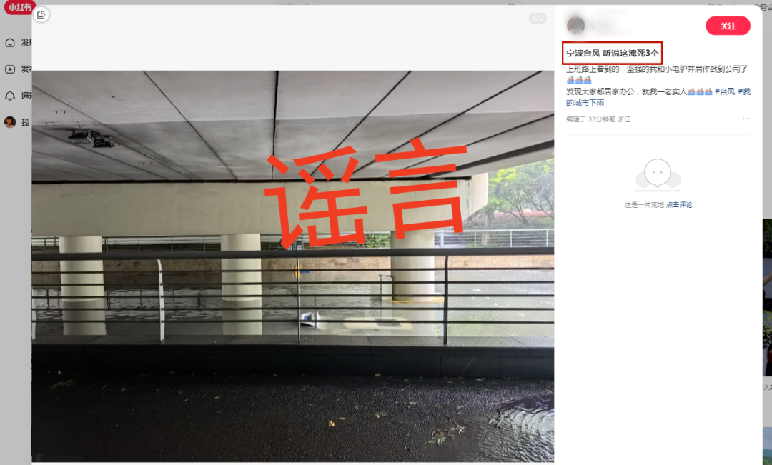 7月30日9时许,某社交平台网民沈某(女,23岁,宁波鄞州人)发帖谣称“宁波一涵洞内车辆被淹,有3人淹死”。