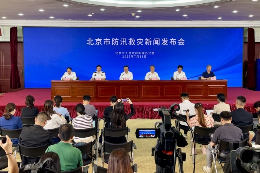 今天下午,北京市人民政府新闻办公室举行北京市防汛救灾新闻发布会。发布会现场,全体起立,为遇难人员默哀。