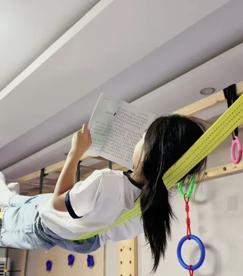 之所以练习躺绳,冯女士表示,是此前偶然刷到一位博主,看到对方躺在绳子的视频,“当时就给女儿看了,她还挺感兴趣的,就在我们家客厅给她安装了一根绳子,让她练习。”冯女士拍摄的视频显示,如今女儿已经可以灵活上下绳了,“还能躺上面看书,最长的一次能在上面躺个十几分钟。”