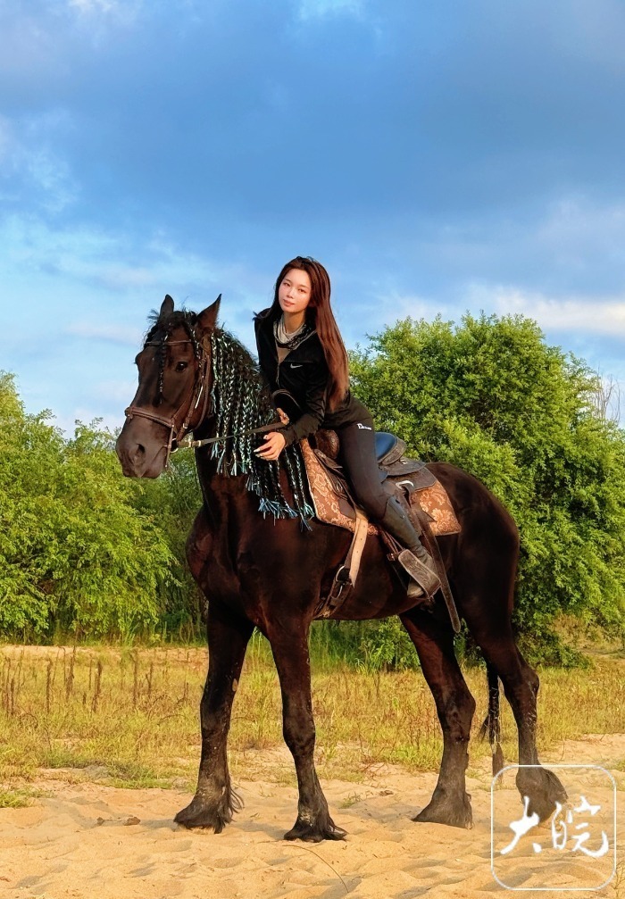 此后,黄梦蝶不断去全国各地有马的地方骑玩。掌握了骑马要领后,她就想拥有自己的马,于是在2024年12月份花20万元从北京买了一匹马,这匹马的品种是(欧洲)弗里斯兰,名字叫墨风。“马是用专业的车辆运回来的,先是寄养在别的马场,偶尔拉出来跑一下。”她说。