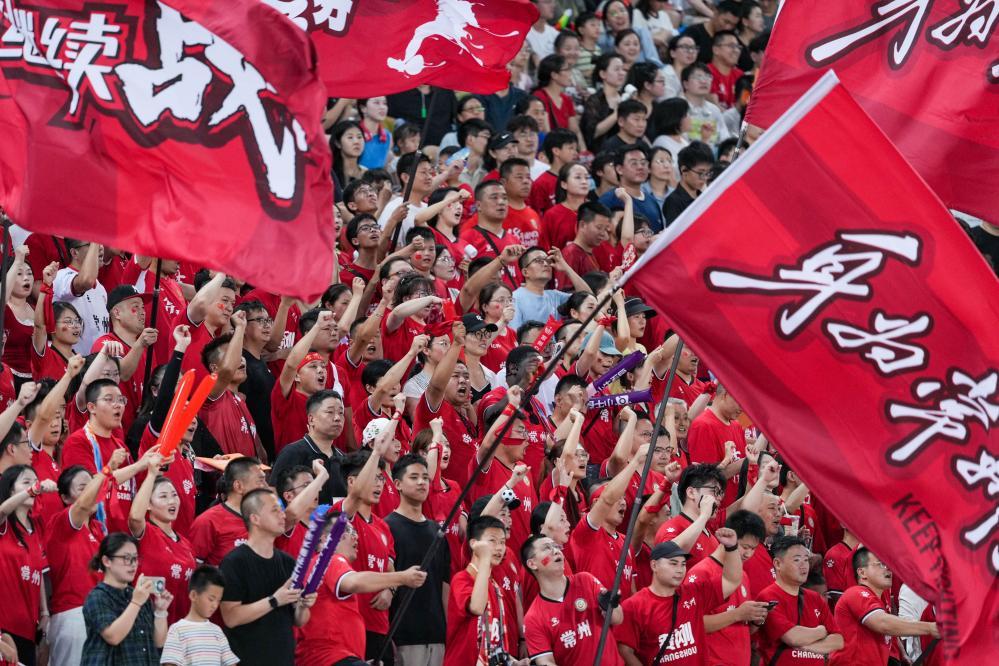 2025年7月20日,常州队球迷在场边加油。 新华社记者 李博 摄