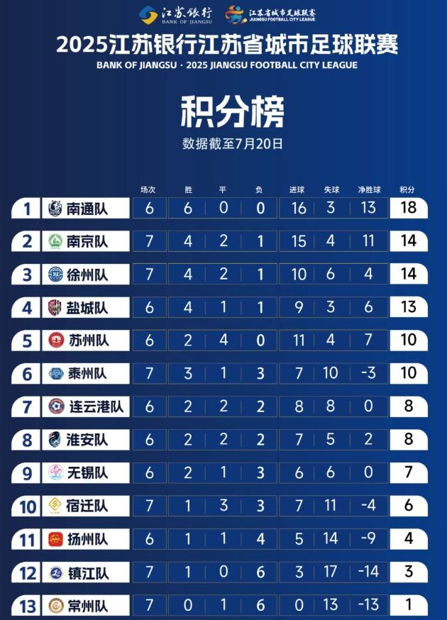 南通队在前七轮豪取六连胜(轮空一轮),击败了目前积分榜2至4位的南京、徐州、盐城和第六的泰州。