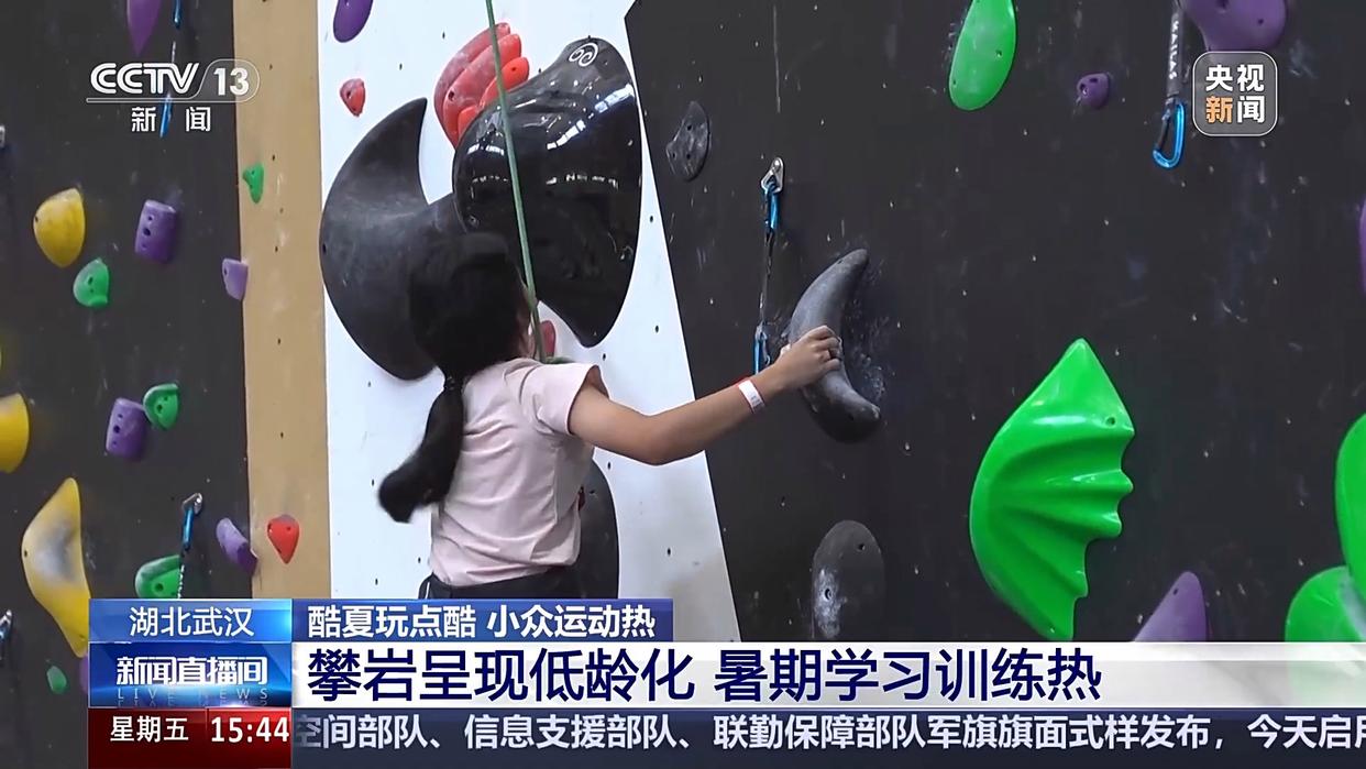 感受完水上运动的清凉,再来看看“岩壁上的芭蕾”——攀岩。近年来,这项运动的玩家呈现出低龄化的趋势。这个假期,在湖北武汉,就有不少针对孩子们的室内攀岩培训班。