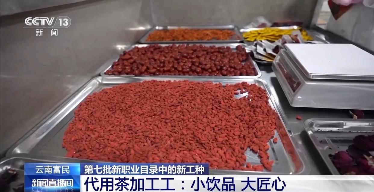 在第七批新职业目录中,还出现了一个名为“代用茶加工工”的新职业,这个有点拗口的名字也引起不少关注。其实很多人生活中都消费过代用茶,像玫瑰花茶、枸杞茶都属于此类。在云南富民县,不少工人已经投身这一产业,用专业技艺赋予食材新的价值。