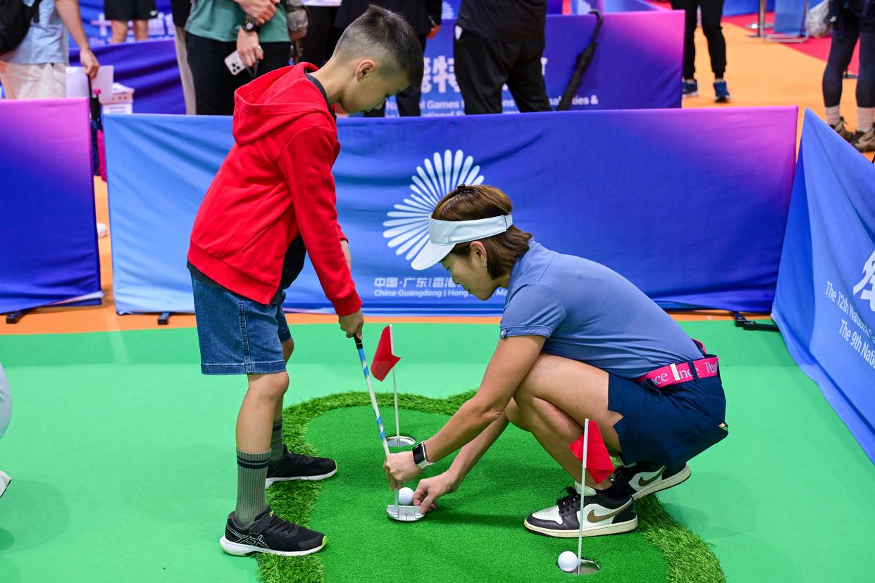 8月2日,一名儿童体验十五运会和残特奥会的部分项目。新华社记者 朱炜 摄