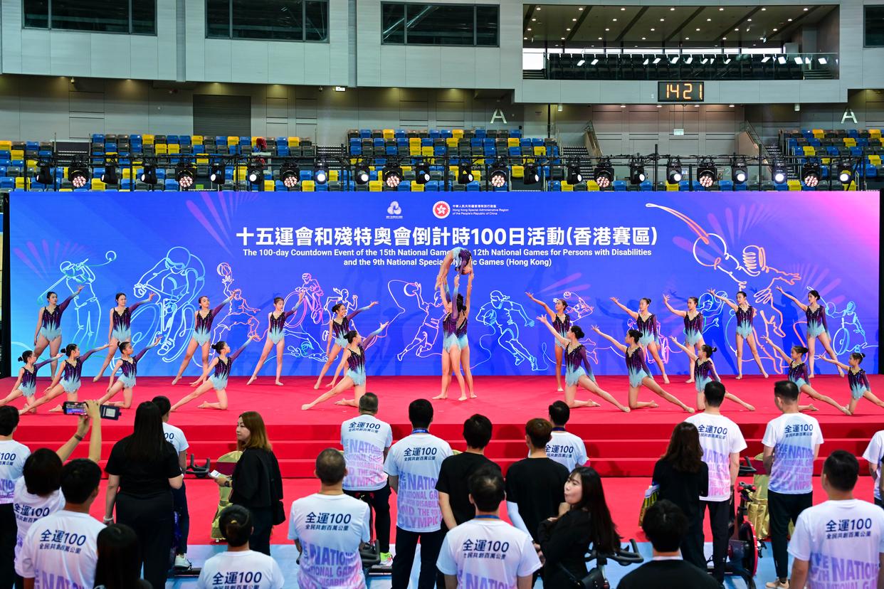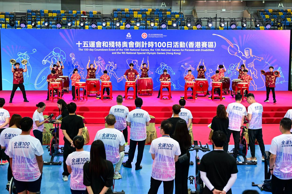 8月2日,第十五届全国运动会和全国第十二届残疾人运动会暨第九届特殊奥林匹克运动会倒计时100天活动(香港赛区)在香港单车馆举行。