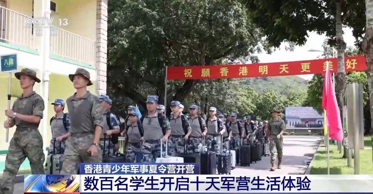 昨天(8月1日)下午,第十八届香港青少年军事夏令营暨第十二届香港大学生军事生活体验营在驻香港部队新围军营举行开营仪式,来自香港百余所学校约350名中学生和150名大学生,将在这里开启为期10天的军营生活体验之旅。