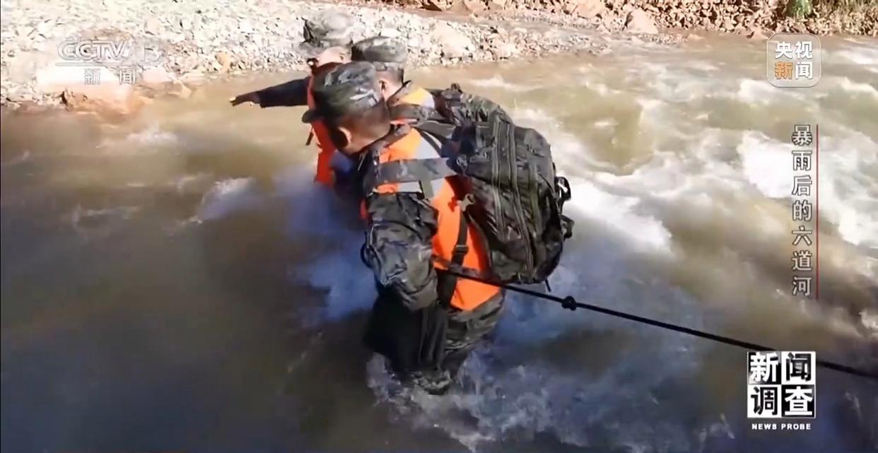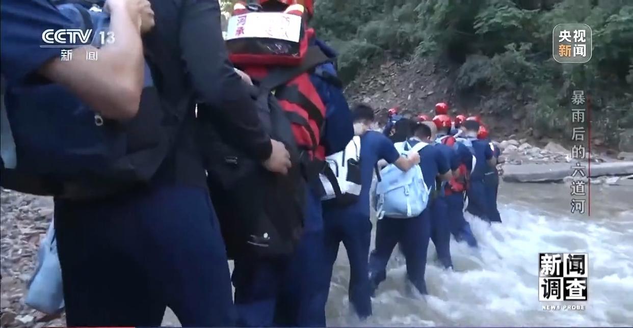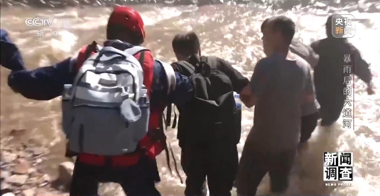 这样的蹚水过河,一路有将近20次。从五道河村走到朱家沟,只有3.5公里,平时步行不过40分钟。可暴雨山洪后的这支队伍从凌晨5时20分出发,经过约4小时的跋涉,于9时多终于抵达了朱家沟村。
