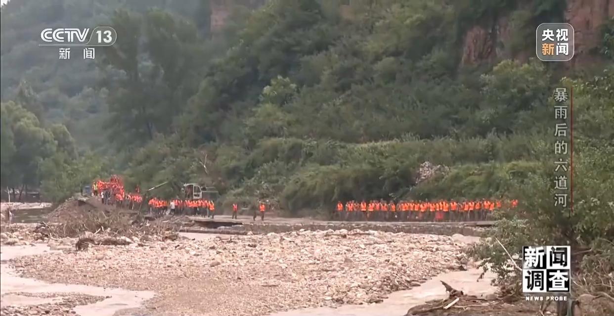 朱家沟村位于山谷深处,沟谷里分散居住着8个村民小组共260户人家。为了摸清朱家沟的受灾情况,早晨5时20分,由武警、消防及兴隆县相关人员组成的约100人的队伍紧急集结,开始徒步向朱家沟村前进。