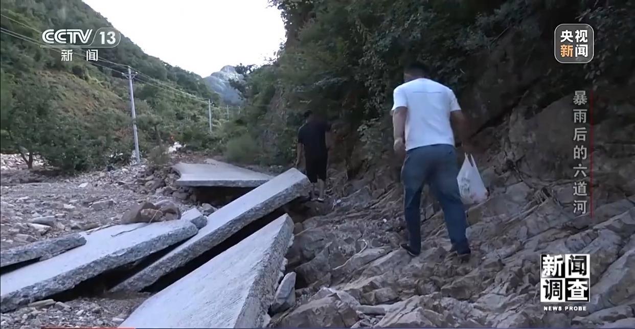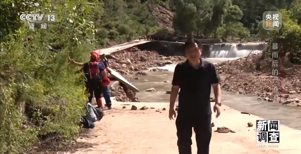 暴雨山洪损毁了六道河镇的很多道路,与五道河村隔着一道山梁的六道河村,虽然紧邻镇政府,也同样遭遇断路断电。村支书王晓林向记者介绍,六道河村共有11个村民小组,正南沟里是最深最远的10组和11组,因为山洪冲毁了道路,不少村民至今还困在里面。