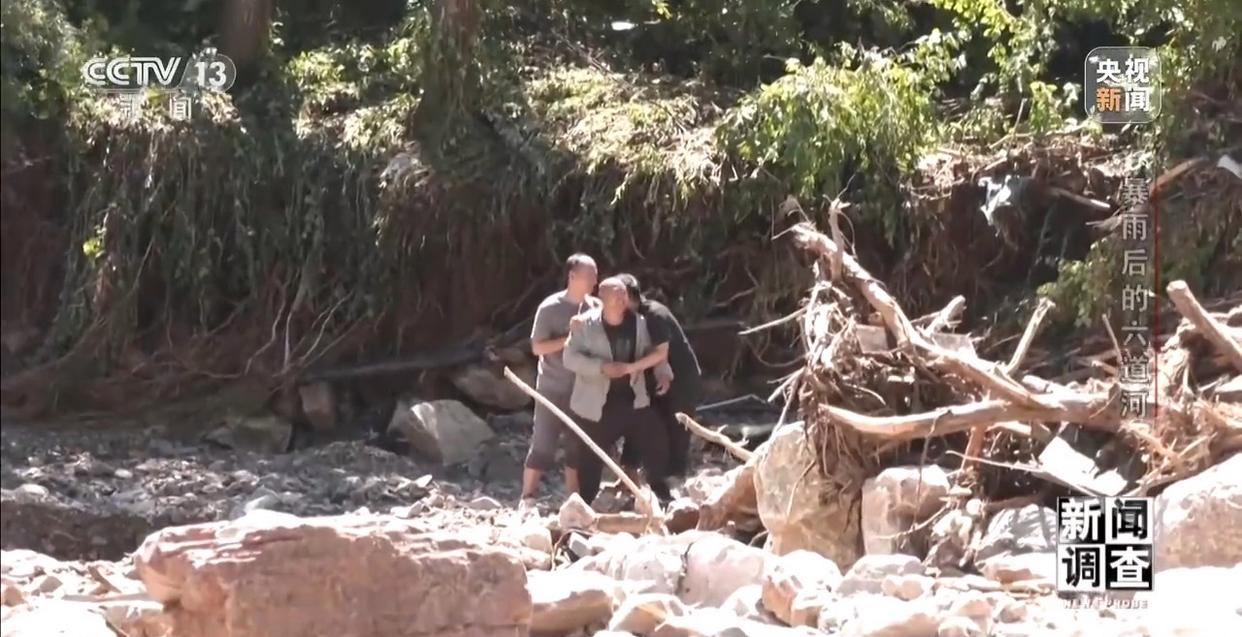 暴雨发生后,在北京工作的小王惦记着家人的安危却又无法取得联系,他从北京赶回六道河,徒步前往朱家沟。