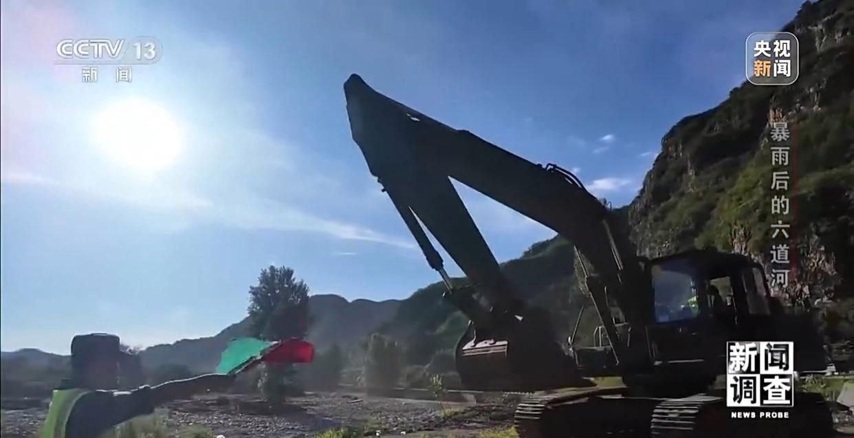与此同时的五道河村,武警官兵也在驾驶挖掘机抢通道路,帮助村民清除自己无法清除的山石。