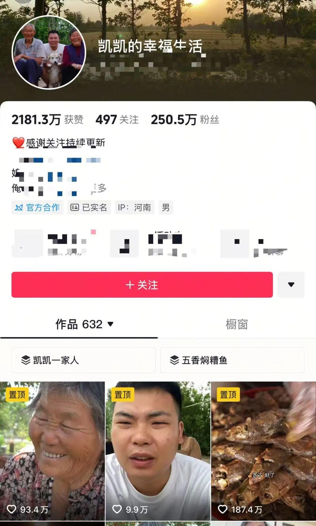 @凯凯的幸福生活的账号分享了与爷爷奶奶相处的温馨日常,目前有250多万的粉丝。