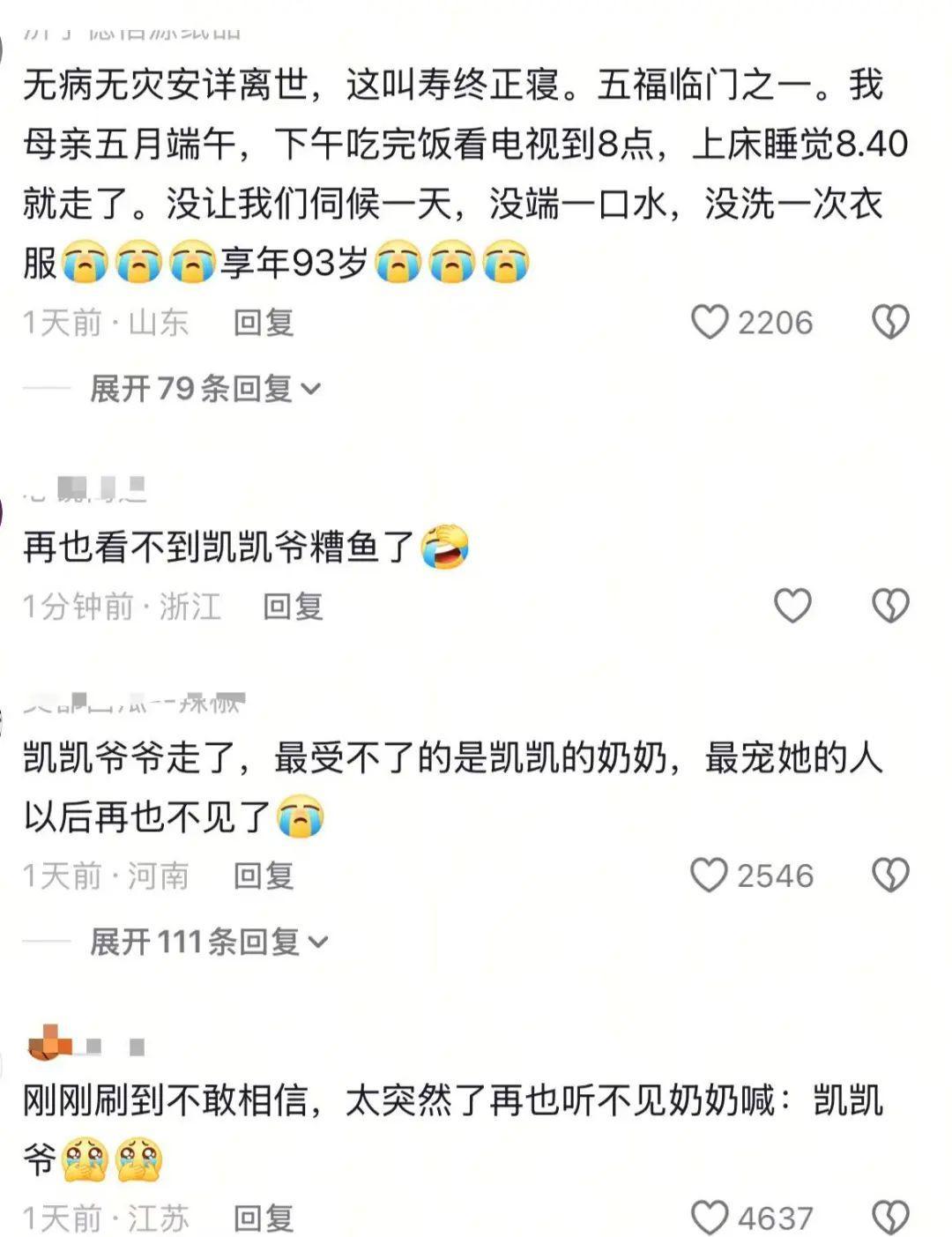 在凯凯爷爷生命的最后时刻,他与凯凯奶奶之间的互动更是让人动容。有一次,凯凯奶奶照例夸赞爷爷:“看你切鱼,一片片亮丽丽。” 而那天,爷爷没有像往常一样笑着回应,而是沉默了一会儿,缓缓地说:“以后你一个人可咋整啊。”